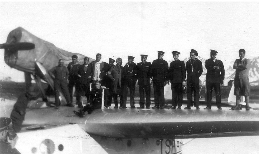 L’immagine in evidenza rappresenta “Volo sul Polo Nord, 1928. Soccorritori sull’ala del Savoia Marchetti S.55 I-SAAT”. Cagna è il primo da destra.