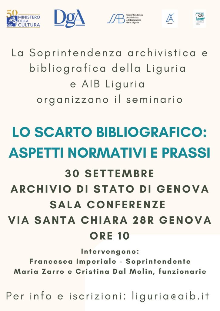 La Soprintendenza Archivistica e Bibliografica della Liguria – Archivio di Stato di Genova e l’Associazione Italiana Biblioteche – AIB Liguria organizzano un seminario riguardante lo scarto bibliografico.