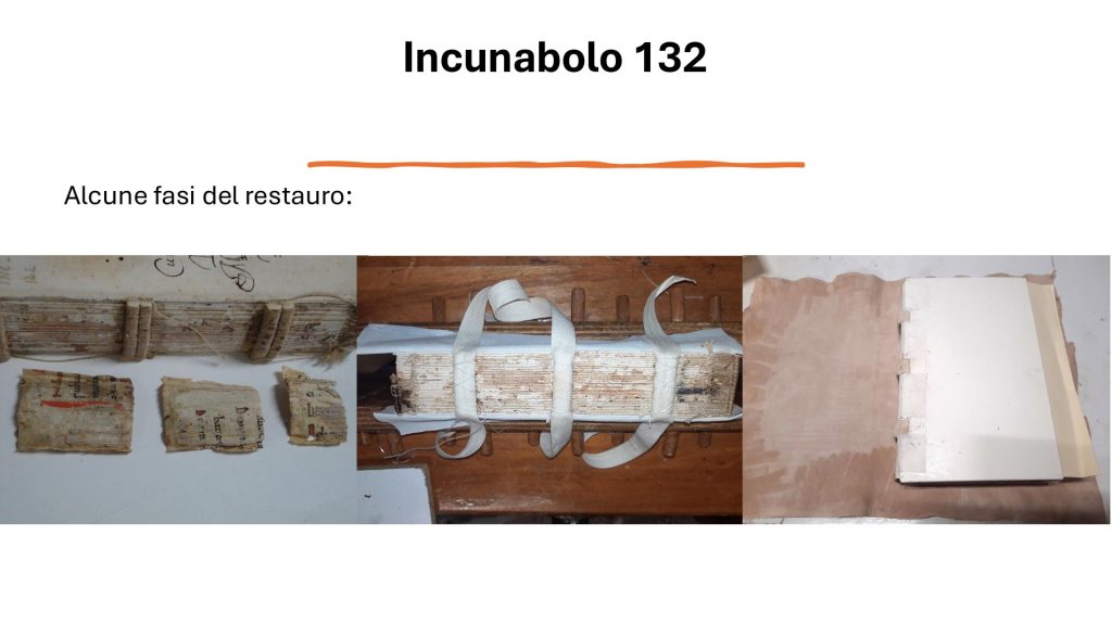 L’intervento di restauro ha riguardato quattro unità manoscritte e cinque unità a stampa (incunaboli, ossia volumi a stampa realizzati fino al 1500), selezionate tra quelle più deteriorate e più significative per la storia della Biblioteca e della Città. Finalità dell’intervento è stata la stabilizzazione dei materiali nel rispetto dei principi di minimo intervento conservativo, secondo le indicazioni previste all’interno del Capitolato Tecnico Speciale Tipo redatto dall’ICRCPAL con la collaborazione della Biblioteca Nazionale Centrale di Firenze.