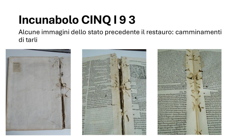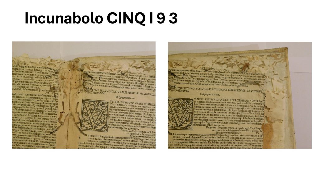 - CINQ I 9 3: Si tratta della Naturalis Historia di Plinio il Vecchio in un’edizione impressa a Venezia nel 1496